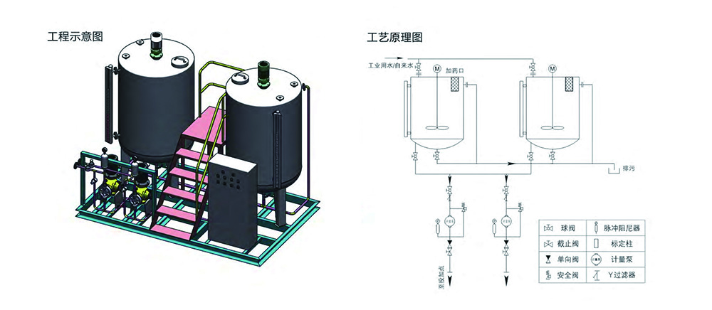 联氨除氧加药装置是一种用于去除水中溶解氧的设备,常用于锅炉供水系统和工业循环水系统中。
