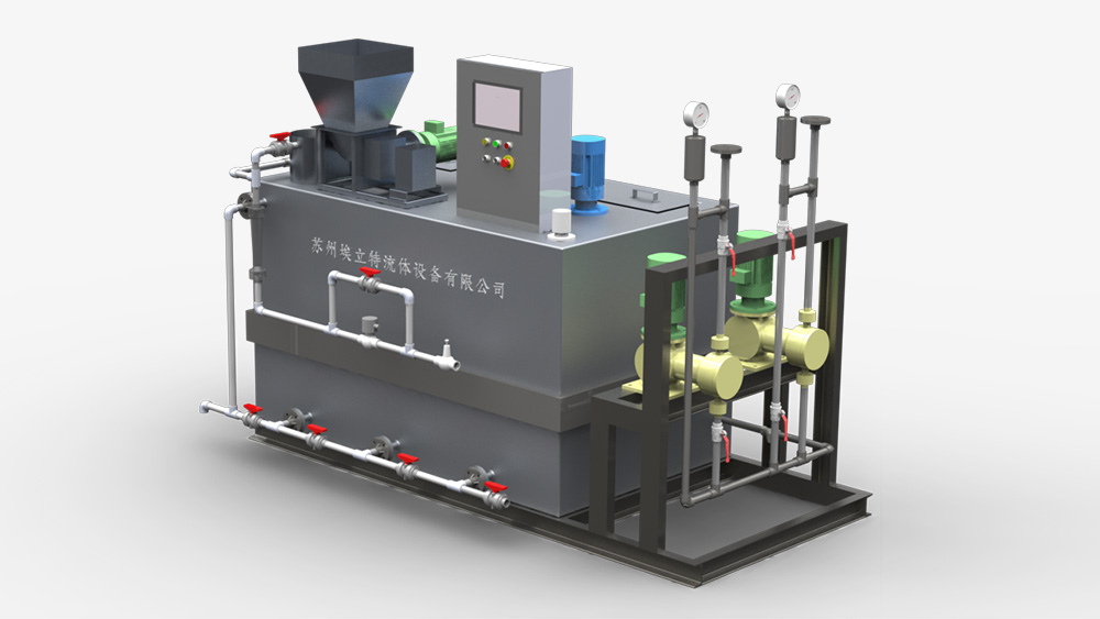 1.药剂储存&溶配单元:储药罐/干粉料斗(PE/不锈钢/碳钢防腐)、搅拌器、三槽式(溶药-熟化-储存)系统;用于稳定药液浓度,防止沉淀分层